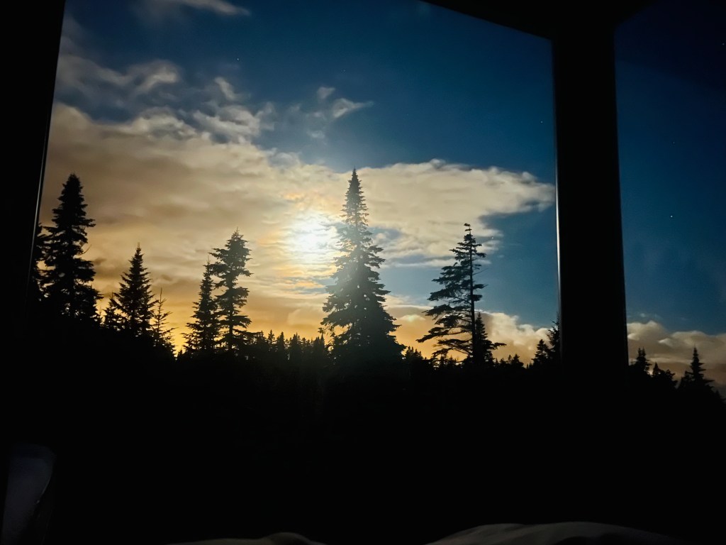There is also this: if I am to live to the age of any one of my four grandparents, I am already well over halfway to death. Seeing the glow of the moon and the slow shadows of the mountains pool in my view, this thought did bring a bit of dread. I tapped my Someone. He stirred and pushed himself up to one elbow. He didn’t ask me why I had woken him– he knows better by now. He simply looked out the window.