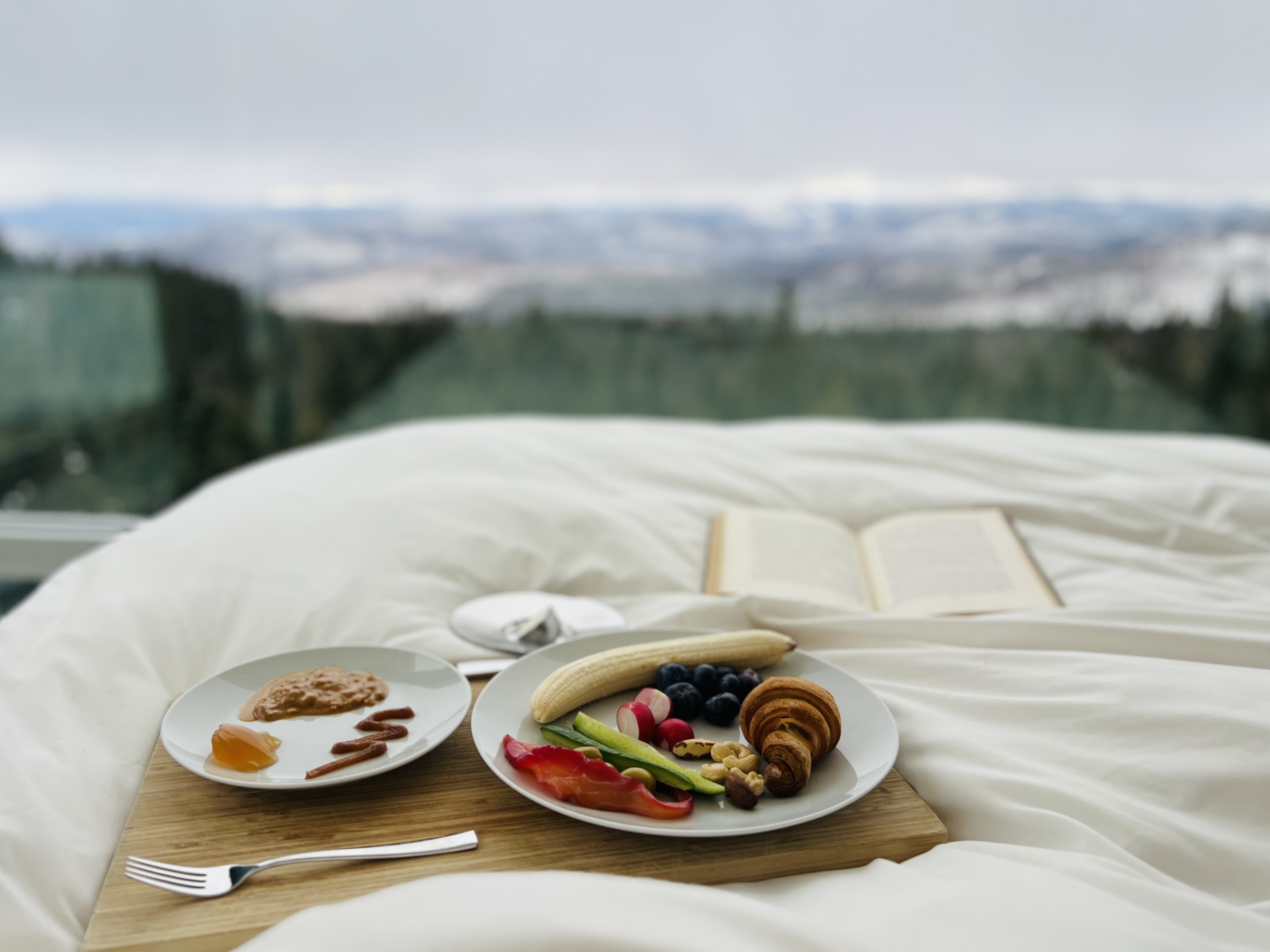 I am sitting in a bed on a second floor of a glass house north of Quebec City, overlooking mountains and miles of dark pines sprouting from land caked with snow. I have a stack of books next to me, am between cups of coffee, and hear my Someone below clattering forks and scraping jars to bring me a breakfast of local croissants and accouterments so that I may write uninterrupted, after which he will also write. This is the culmination of my childhood dreams. In the fray of this moment, it may not appear that way– it’s endless emailing and hustling and moving things from one room to another, or one state to another, in and out and repeating. As a kid, I didn’t know about the latter– about the drivel of daily life; I knew only of the former– the dream that I would be a writer in a beautiful mountainous place thinking my thoughts and eating delicacies from foreign places. Even if that foreign place is only French Canada. I acknowledge that this is not my everyday, and that I did not just “land” here. It is, however, a beginning of a different sort. From this idealistic perch, I am able to see the culmination, the mountain in its various stages from the top and the bottom. It is a fabric loosely gathered of my life so far, and I am able to wrap these four decades around me in the semblance of a tunic, this birthday the sacred wreath for my head. It is a victory in many ways. And like most victors, the winning is merely the beginning of a new cycle of trying for the next crown. And so, I begin again.